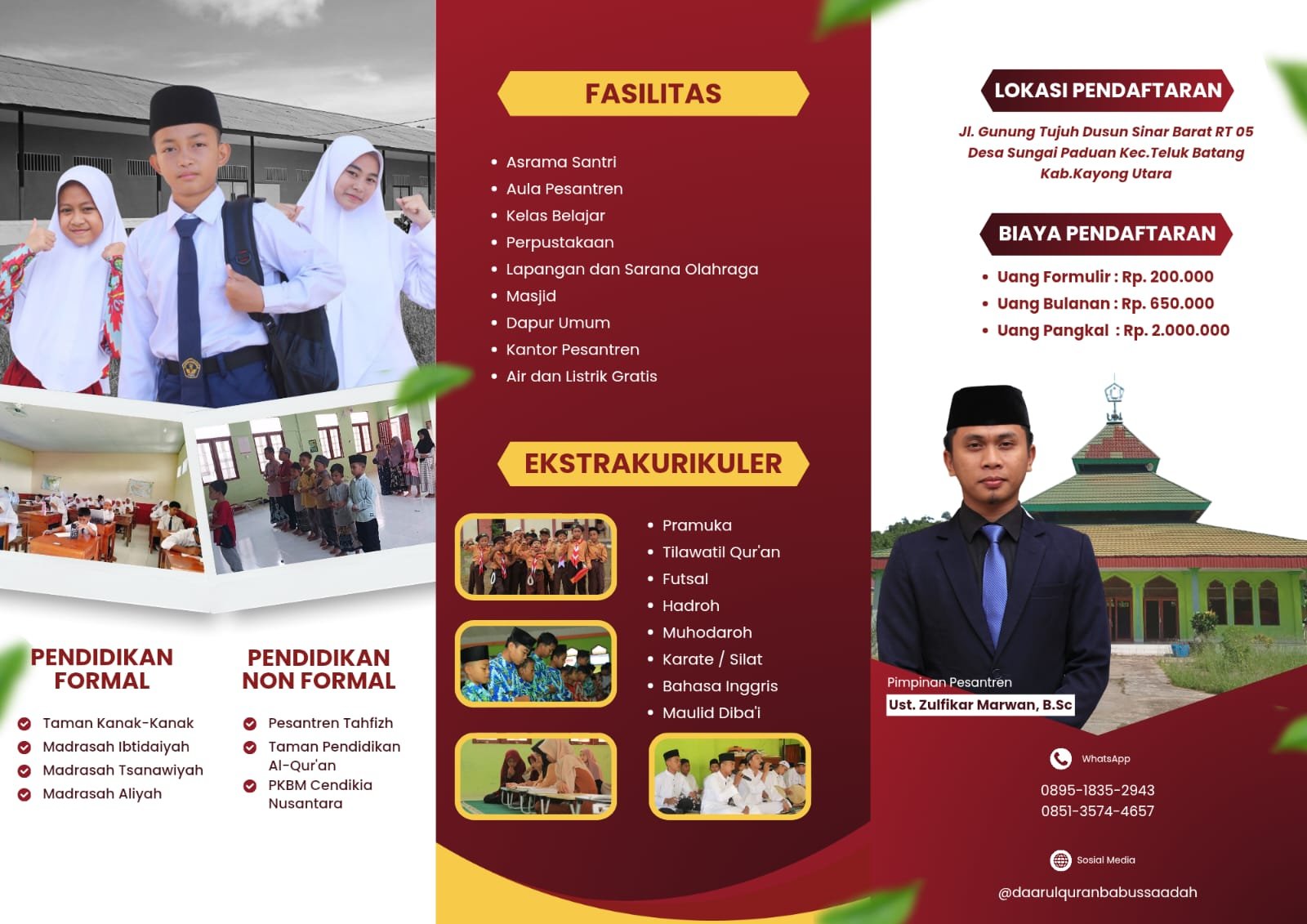 Pesantren Daarul Qur’an Babussaadah hadir di tengah masyarakat Kayong Utara sebagai lentera pendidikan Islam yang memadukan kedalaman spiritual Al-Qur’an dengan kemandirian karakter. Kami berkomitmen untuk tidak hanya melahirkan penghafal Al-Qur’an (Hafidz), tetapi juga pribadi yang memiliki akhlakul karimah dan siap menghadapi tantangan zaman.